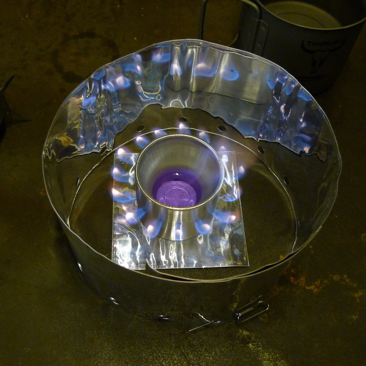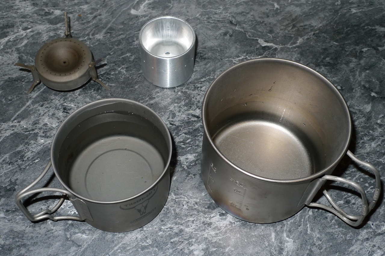 The only meths burning stoves I used were Trangia which seem to be made of cast iron compared to these! I remember I used to mix a tiny bit of water with the meths to increase the burn time and reduce the amount of soot on the bottom of the pan. I think it reduced the heat of the flame though, which isn’t good considering the thickness of trangia pans (esp the non-stick ones).