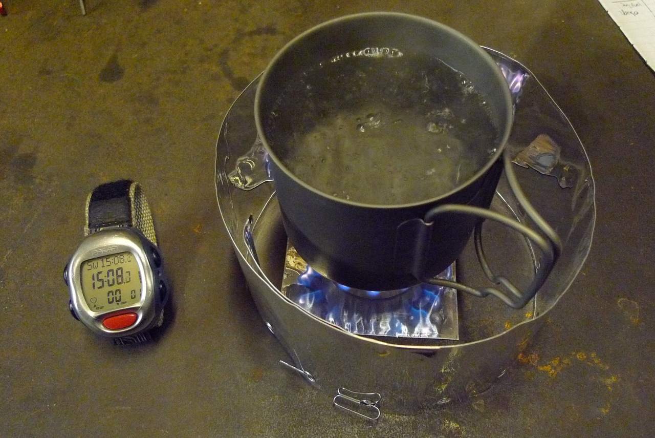 I lit the stove and timed it to the point that a steady flame emerged from all the jets. I placed the windshield around the stove put the pan on and began recording the boil time. The recorded times below are once the pan has achieved a rolling boil.