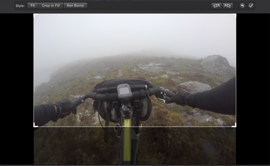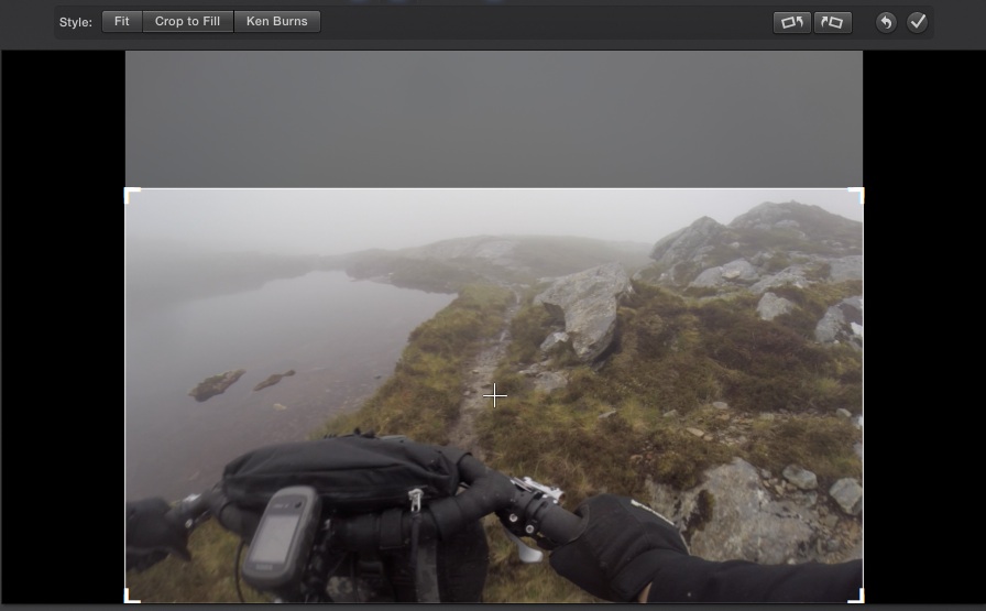 By chance, I stumbled across this useful little video on GoPro tips via MTBR. While my footage was going to be quite a bit different, the tip on resolution was a good one, and I set mine up to capture footage at 1920 by 1440 at 30 fps. What this does is capture more height as compared to the 1080 setting, giving you some scope to adjust the position of the final clip for the 1920 by 1080 aspect ration I would be editing the film in. As I found with the chest-mount in my first test before the event, the position you need when standing and seated is different if you want to maintain a view of the bars. This setting gives you a chance to correct that, as shown below, when you don’t have the ability to adjust the angle of the camera in the mount all the time.