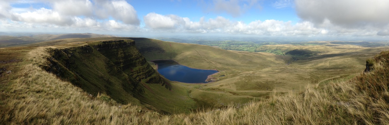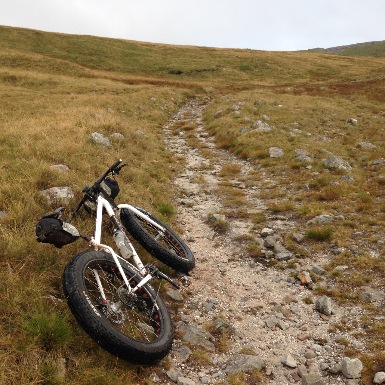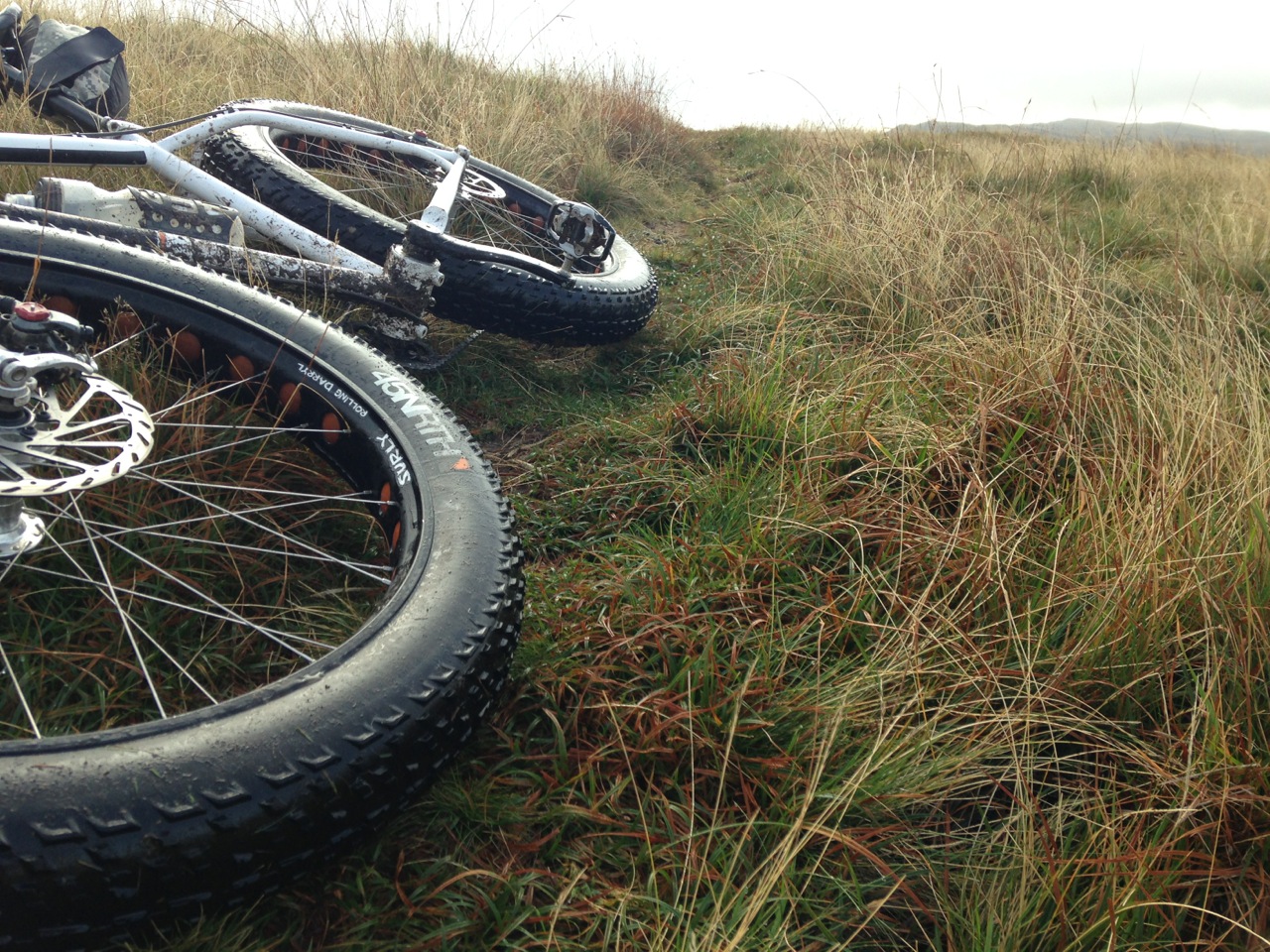 The riding was hard going; the grass sucked hard at my fat tyres, but I pressed on knowing that without them I probably wouldn’t have been able to ride much of the trail at all. The sun was putting in a more regular appearance now, and to be on this iconic ridge on a bike in virtual solitude was quite incredible. I arrived at the summit of Fan Brycheiniog at around lunchtime, and seeing as I had my bivvy gear with me, I cooked up some lunch of noodles and soup. Though the distance ridden was comparatively short (about 12 miles since my bivvy stop), the effort expended had been significant. I lingered on the summit for a while to soak up the surrounding landscape before embarking on the tricky descent off the ridge and the ride back to Brecon.