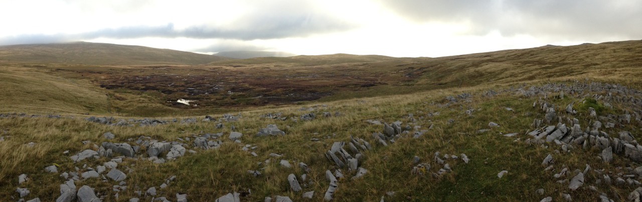 My ride from Brecon started the previous evening, ending just above Dan-y-ogof caves with a bivvy overlooking the Tawe valley. From my bivvy spot, the track climbed steeply northwards on a mix of grass and sparsely vegetated stone track. I quickly gained height to an elevation of about 500m. Evidence of civilisation lay far back down in the valley. Behind me the morning sun was still struggling to get the better of the looming clouds. To add to the atmosphere, the track skirted a dark and menacing looking bog. The source of the Afan Haffes, this area is fenced off to prevent livestock, people and even fatbikers from straying into it.