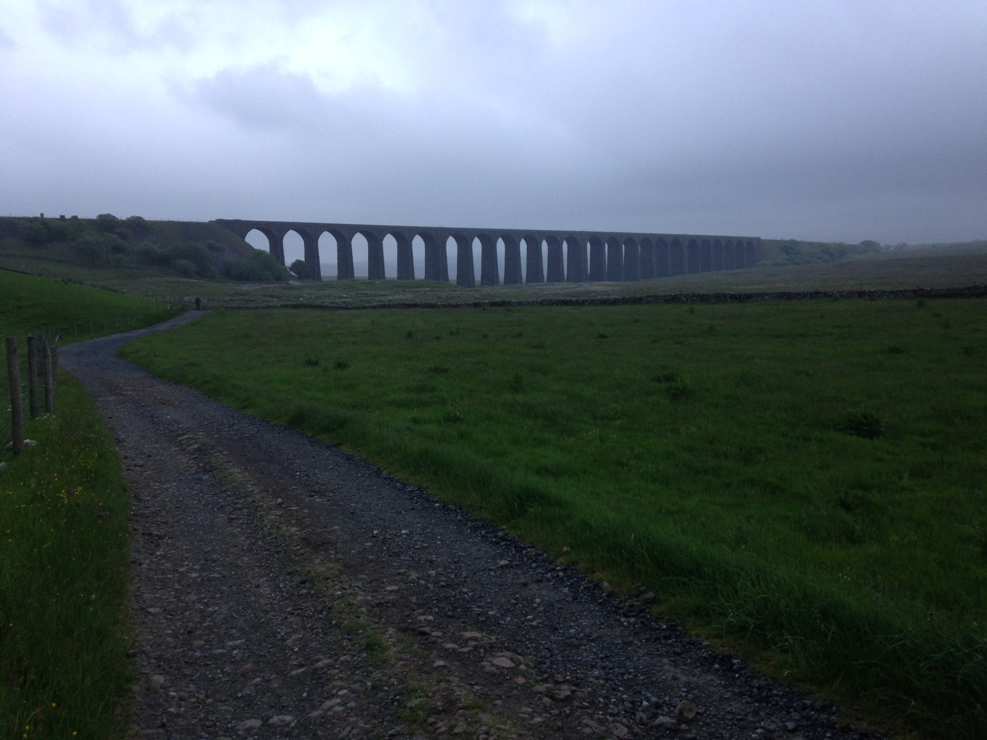 At 3:00 am the first of forecast rain woke me up, so I quickly gathered together my gear and within 20 minutes I was on my way down the valley. This was to be a ride of two distinct halves. My arms and legs tingled slightly from exposure to the sun on Saturday, but there was little doubt that today would be easy as Wind was back but this time with his old friend Rain. On the climb up the side of Whernside I spotted a rider in the distance which spurred me on to catch them up. Mick Collins was one of the riders who had come by me while I bivvied earlier, but he had taken less sleep than I. We rode together down to Ribblehead, before I pulled out a lead and eventually put myself out of sight.