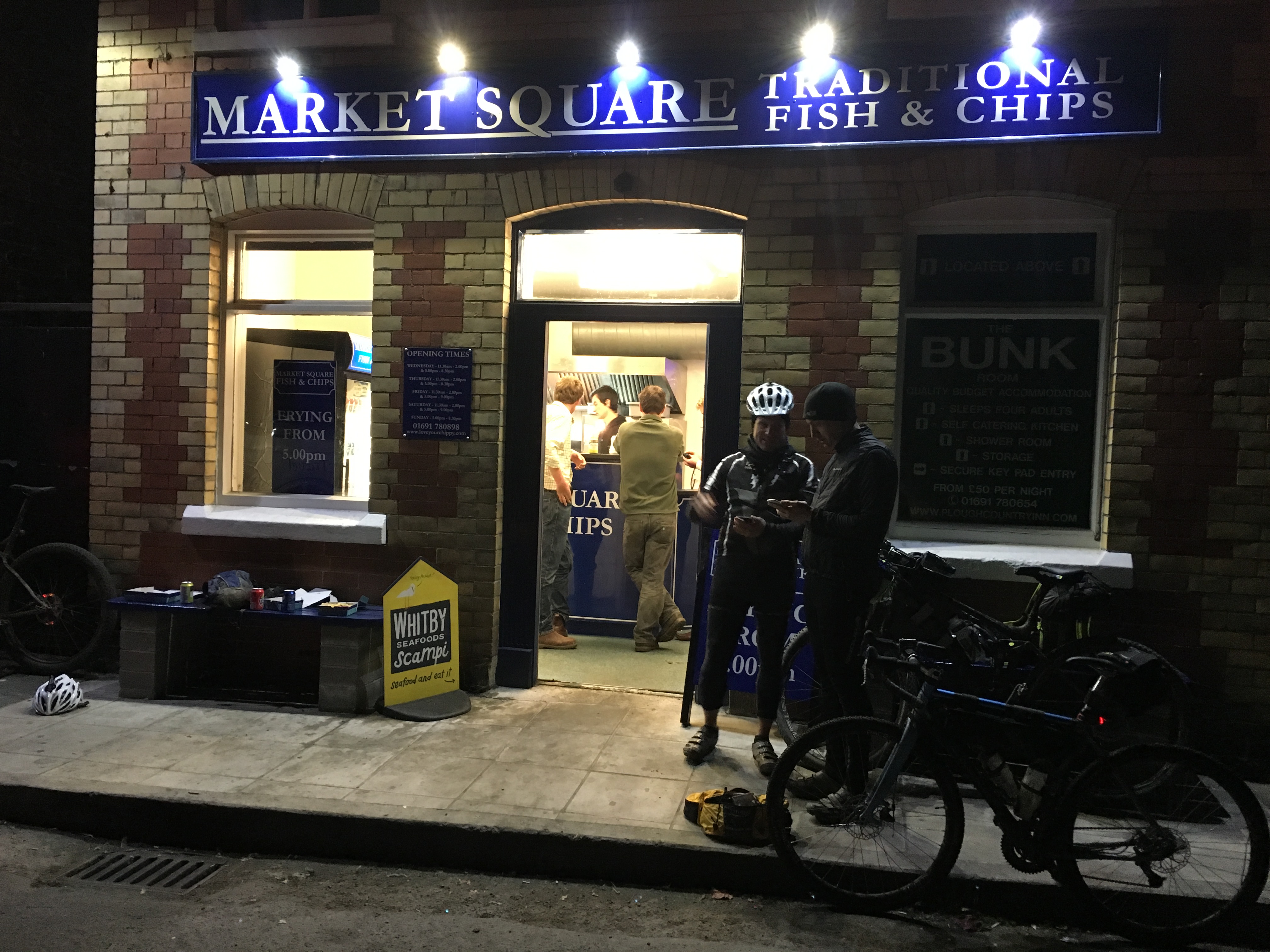 The light was starting to fade as I left town and by the time I eventually made the chip shop in Llanrhaeadr it was properly dark. With nearly 12 hours in the saddle and 117 km on the clock, I was much in need of a portion of chips and a can of Pepsi. £2.40 later, I was feeling a bit better with things. A few other riders were there with a mix of issues, though mostly bike related than mental.