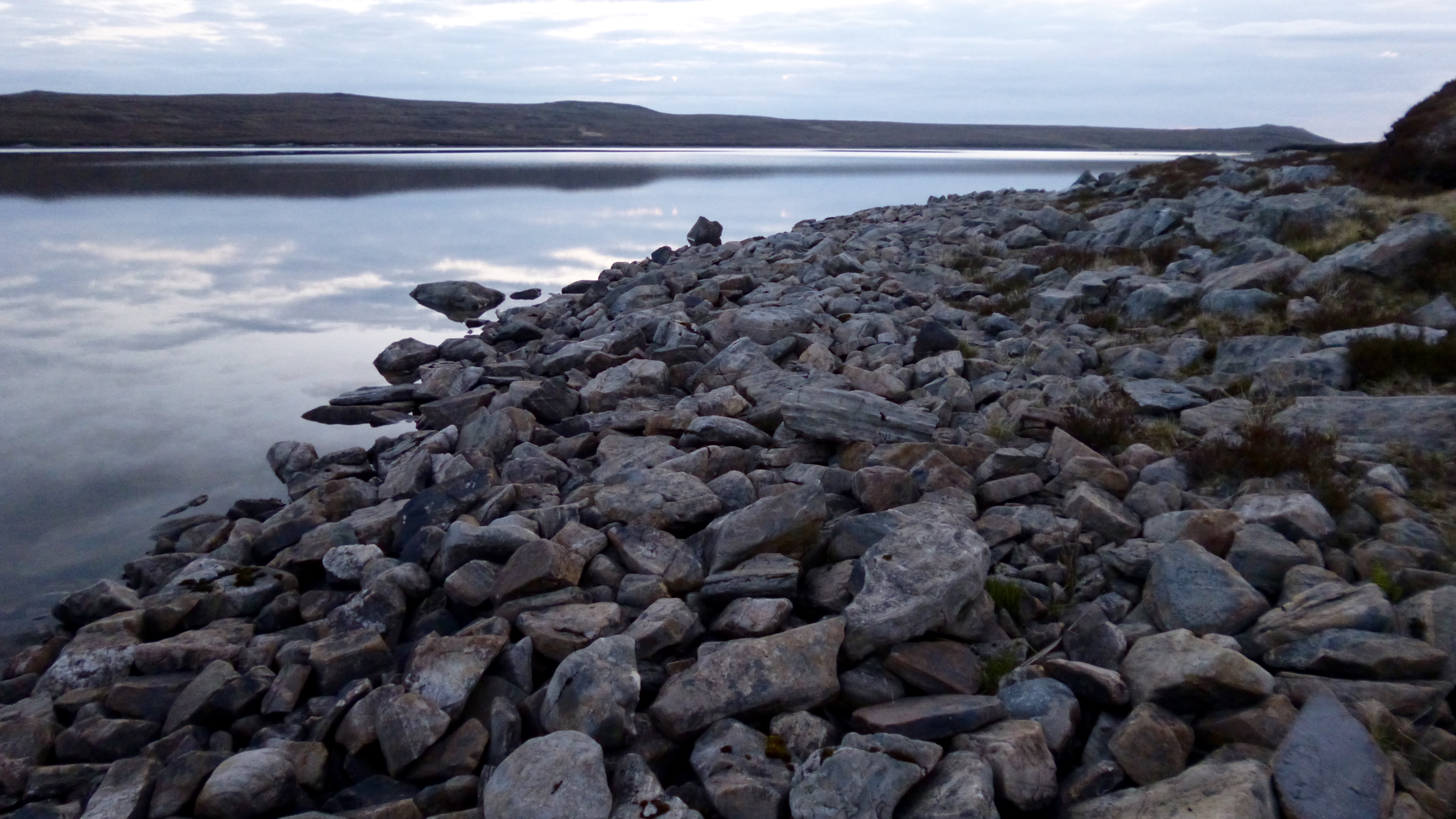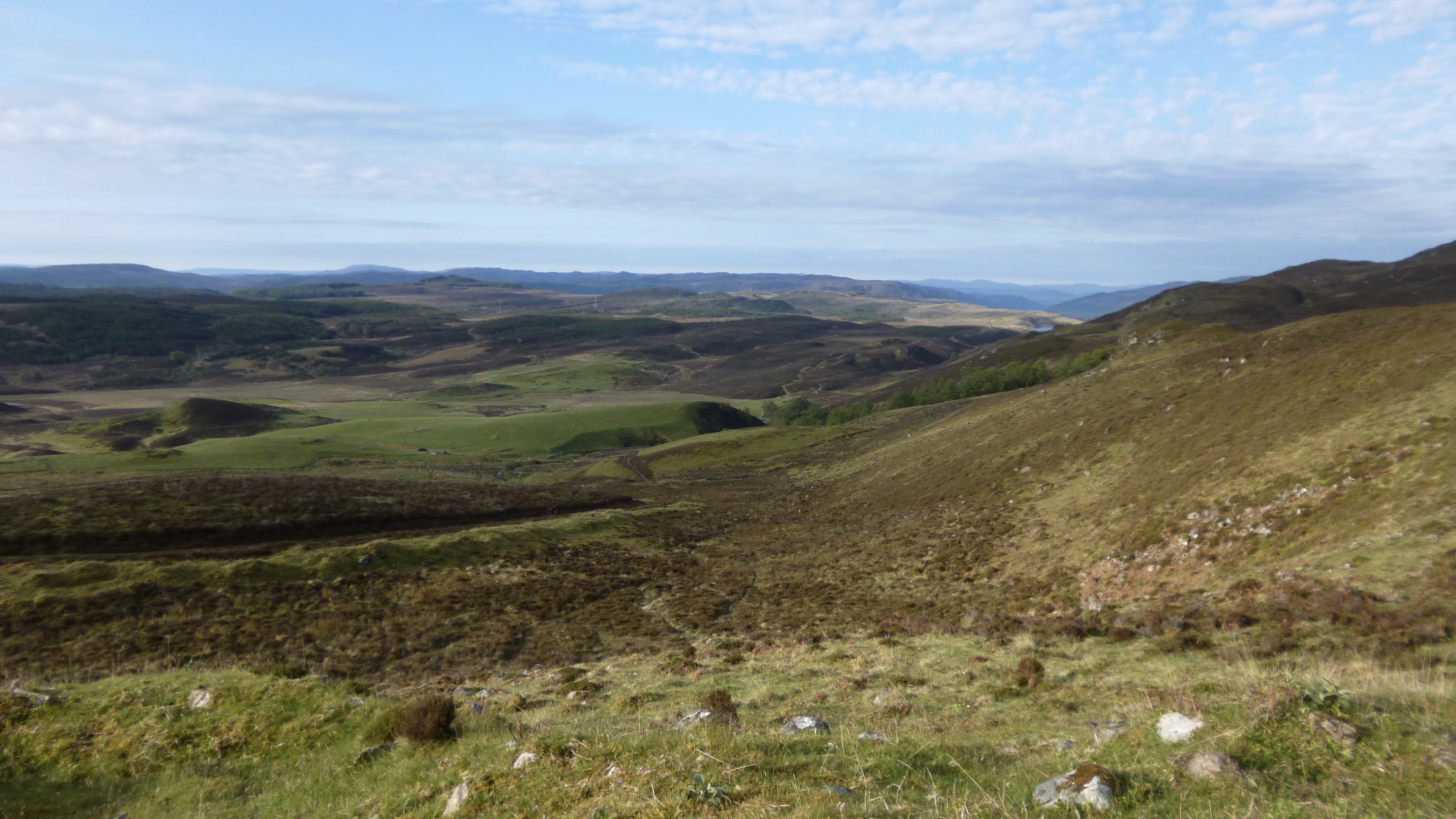 Invercassley next, and it was only 6pm. The sun was low and warm and it wasn’t long before I passed my planned bivvy for the night. Way too early to stop now though, so I decided to carry on to see how far I could get by dark. The steep climb over Maovally finally relented and far reaching views over Loch Shin were revealed.