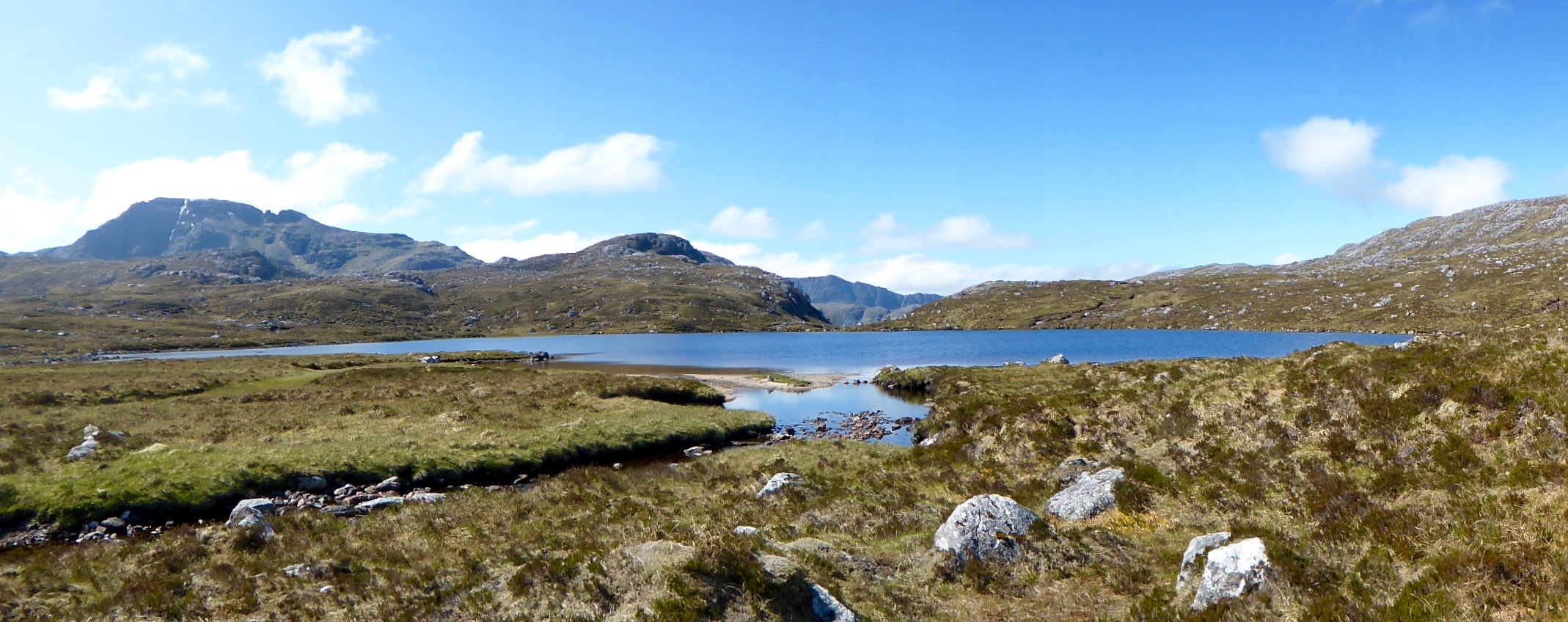 Finally the pushing ends, and amidst the cloudless summits I stand for a moment in awe. In 2013, the cloud was down and I never saw the full extent of Fisherfield. This was a moment to savour; I may not ever experience conditions this good here ever again.