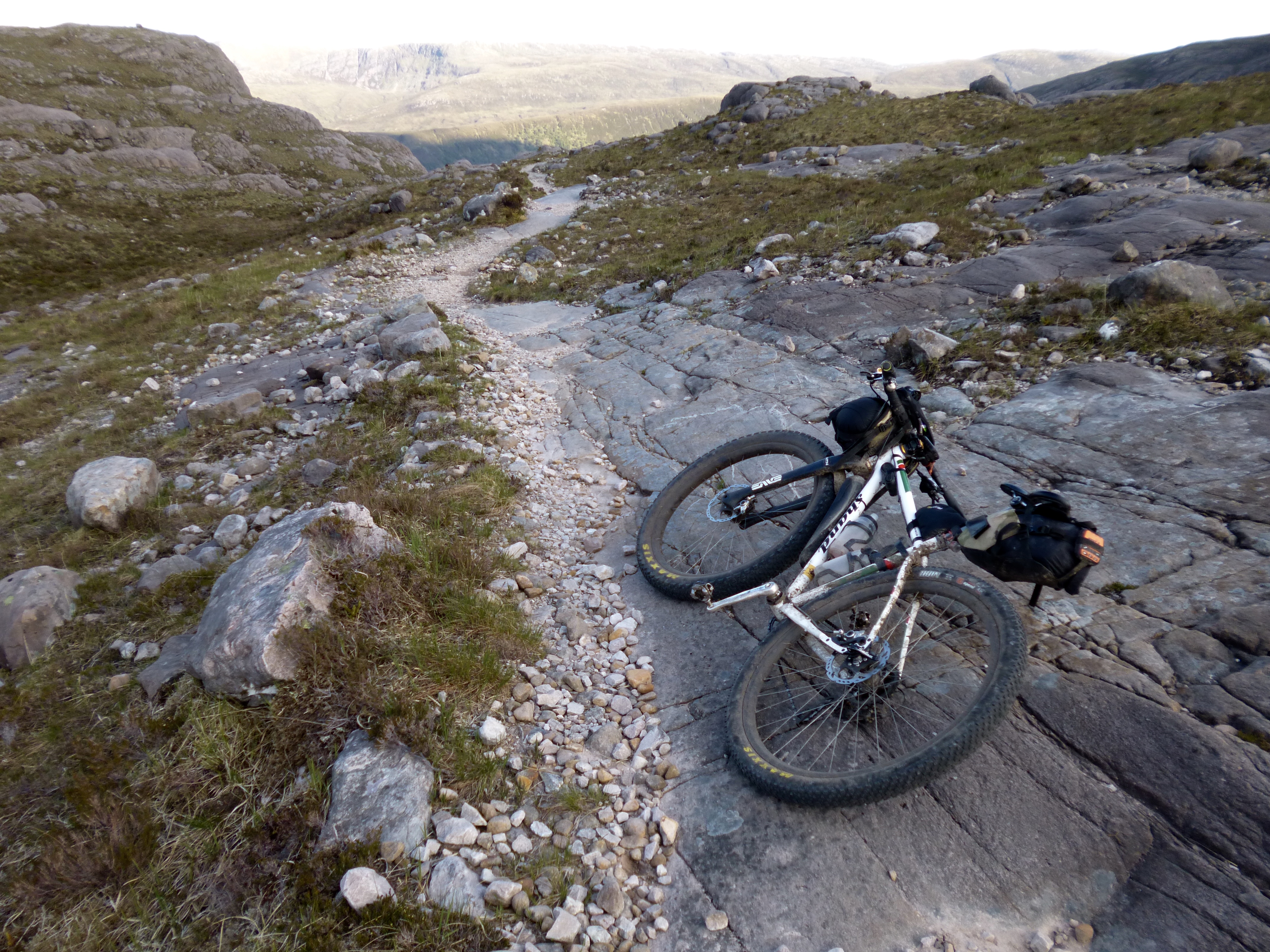 • Enjoyed that very much Ian, good writing and superbly clear pictures. I had set off May 23rd, but it was the postie path section that finished me off… Too tired to risk riding most of it, hot sun, flies, and the awkward walking where you can’t place your feet (my left foot) firmly on the ground meant my old fractured heel injury was causing problems. Then the ravine with the tree ! I muttered several times ‘if this is bike packing you can stuff it’, and was cursing Alan. By Kinlochewe I had decided ( and that was 8:15pm) I’m out. Besides the foot I had Achilles’ tendon problems, extreme saddle sore chafing, and a sore neck probably through pushing on the right hand side (I find it difficult pushing on the other side). But I had to do 75 miles to get back to Fort Bill and a train.