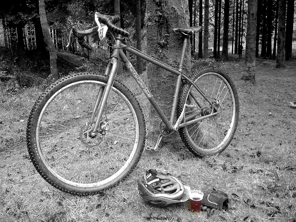 I was getting good at the lower section, coming out of it smoothly with more speed. The first big steep cleared, and keeping away from the groove, I muscled the bike over steps two, three and four. Everything was a blur and my planned line now somewhere over to the left. I picked the front up over the final step, but I was tired now. The back didn’t follow. Bugger. I stepped off the bike, having lost my balance at critcal moment. I looked back down the maze of steps and grooves, and then at the (comparitively small) step I’d failed on. Gutted. The assembled crowd dispersed.