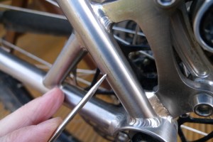 Equally exciting was the large box that arrived from Alaska just when we got back from holiday. It was fork: steel, black and wide. Specifically, 135mm wide. It was to go with a special wheel I’d precured from Singletrack World classified the previous month. A 135mm custom Phil Wood hub laces to a Speedway Cycles Uma II 70mm wide rim and shod with a Surly Larry 3.8″ tyre.